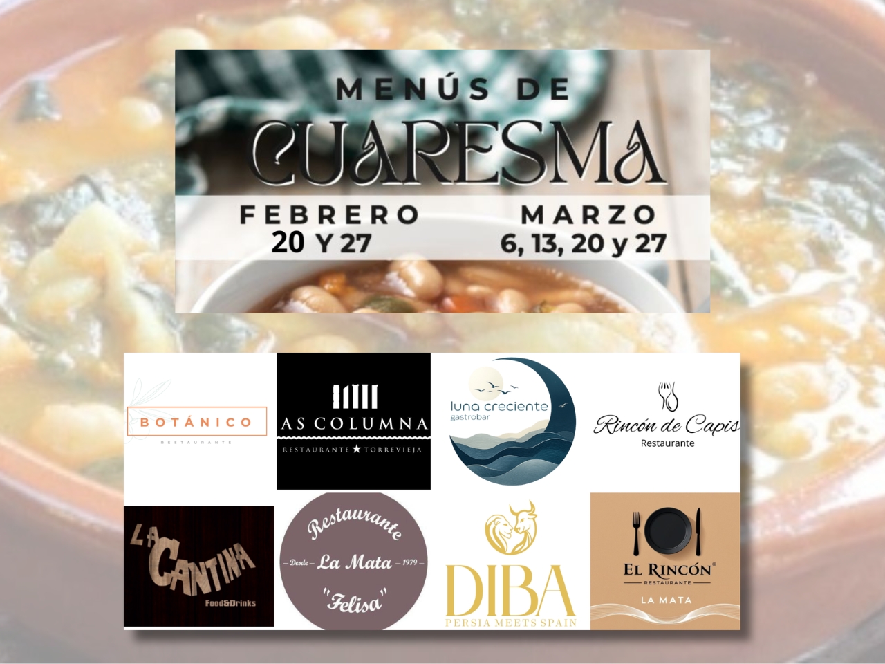 La Cuaresma se saborea en la mesa. Durante los días 20 y 27 de febrero y 6, 13, 20 y 27 de marzo, varios restaurantes de Torrevieja, La Mata y Rojales ofrecerán menús especiales de Cuaresma con precios cerrados por persona.